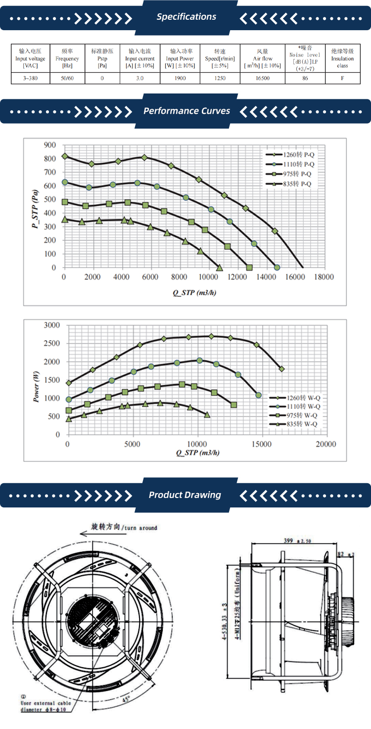 Quạt ly tâm Krubo K-EC630-K380-12, 380VAC, 630mm